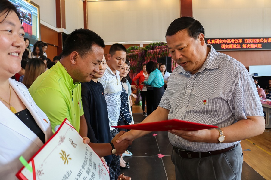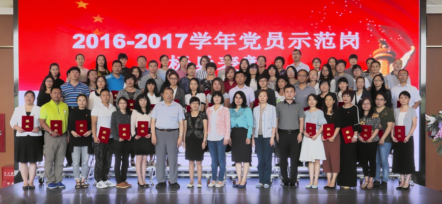 陈经纶中学党总支书记张静宣读表彰决定,集团思想文化建设部主任李荻主持,分三批次先后表彰师德示范标兵、教学示范标兵、德育示范标兵;课程拓展示范标兵、合作交流示范标兵、专业发展示范标兵;管理示范标兵、服务示范标兵、志愿服务示范标兵、特色工作示范标兵。陈经纶中学教育集团各校区及集团行政张辉、丁文彦等75名受到表彰的优秀党员教师身着正装,佩戴党徽,上台领奖。集团校长张德庆、工会主席冯梅、行政副校长穆洁等领导亲临会场为获奖标兵颁奖。