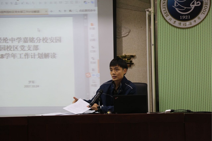 2017年10月24日,陈经纶中学嘉铭分校党支部(安园、秀园)召开全体党员大会,集中学习习近平总书记重要讲话精神,引领全体党员积极有为,锐意进取,不忘初心,砥砺前行。
