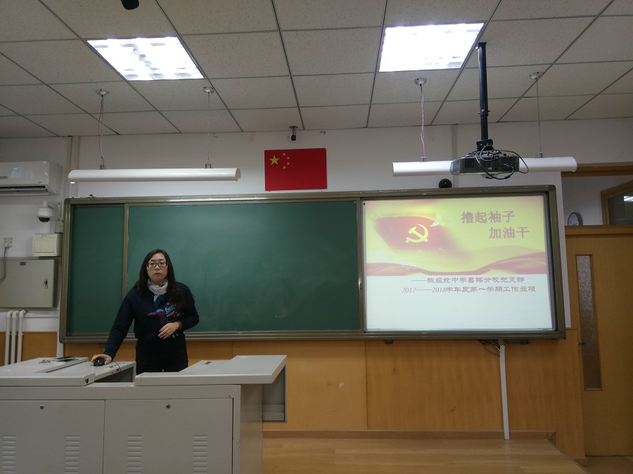 2017年10月31日,陈经纶中学嘉铭分校党支部(嘉铭、欧陆)召开全体党员大会,组织党员学习中央和北京市党建文件,引领党员领会文件精神,发挥先锋模范和政治保障作用。