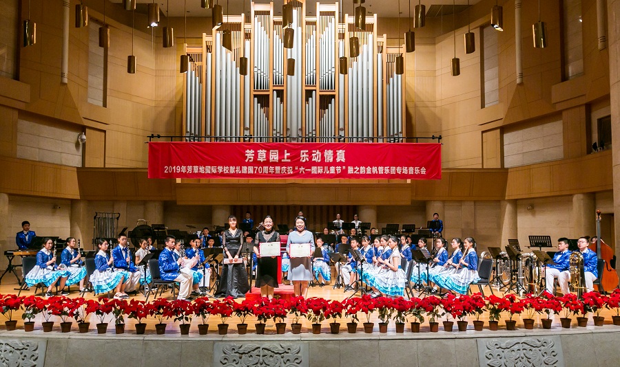 2019年5月28日,应芳草地国际学校邀请,陈经纶中学本部初中“经纶之光”管乐团参加“芳草园上 乐动情真”献礼建国70周年暨庆祝“六一国际儿童节”金帆管乐团专场音乐会演出。