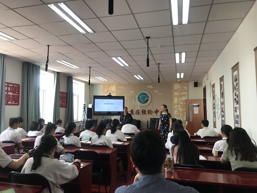 2019年6月15日,陈经纶中学本部初中校区在多功能厅举办初三年级道德与法治学科“考前梳理与聚焦”讲座,邀请北京教科院基础教育教学研究中心教研员金利老师为初三师生做考前培训。本部初中校区综合教研组长杨海晔老师主持活动,集团初三道法教师以及本部初中校区初三学生聆听讲座。