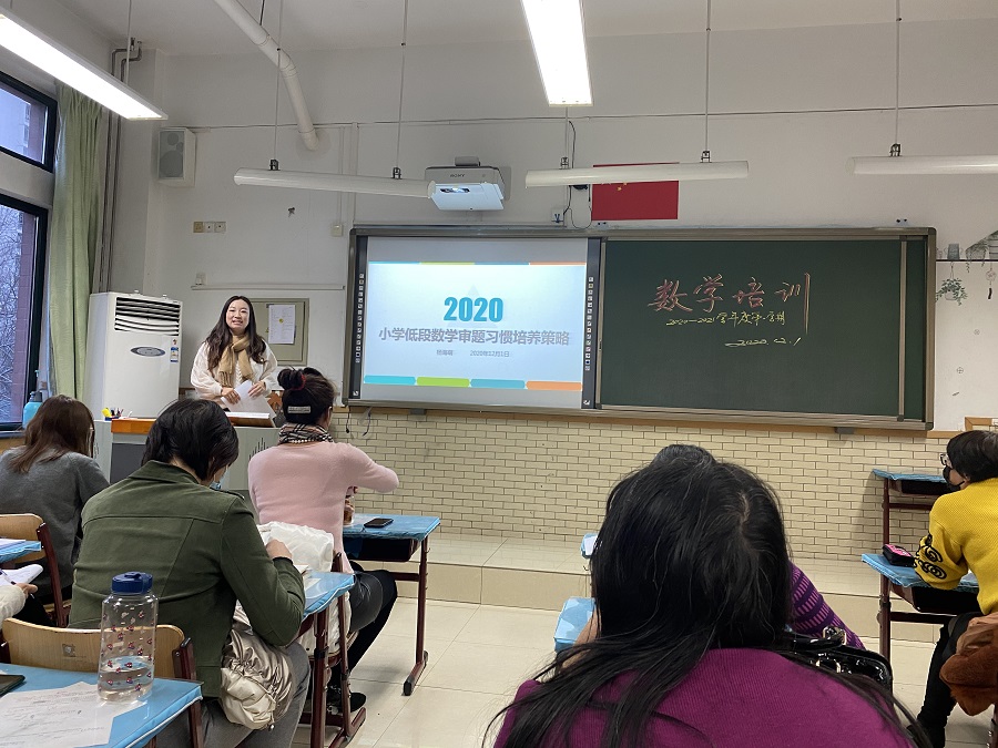 数学学科分别由嘉铭校区教研组长杨海萌、秀园校区教学副主任张金玉主讲。杨老师从如何研读教材、如何研读教参,如何把教点、考点以及学生思维、能力的生长点结合,谈了低年级数学教学中的一些方法、策略;张金玉副主任则从板书的设计、学生的习惯培养、家校的合作等方面,介绍了自己行之有效的做法。