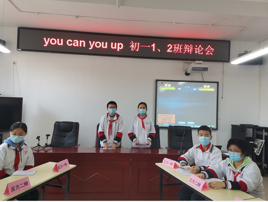 为培养和提升学生的学习能力和思辨能力,2021年3月23日,陈经纶中学本部初中校区初一年级(1)班、(2)两班学生在三层多功能厅开展了主题辩论活动。