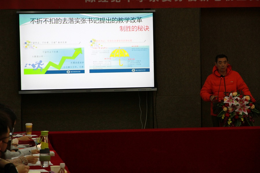 最后,高殿君校长进行总结发言指出,本次会议既是交流会,又是动员会和反思会。我们不仅要善于总结经验,传承好的方法,还要善于发现问题,反思存在的不足,创新教育教学过程,做好资源共研、共创、共享,把培养学生的核心素养落实到每一节课中,规矩规范教学,争取新的初三再创佳绩!