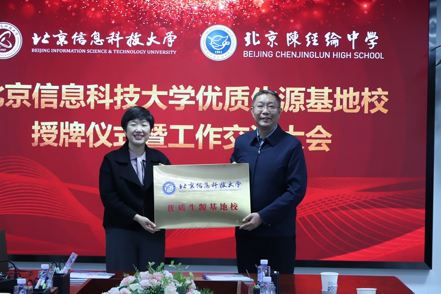 12月17日,北京信息科技大学(以下简称“信息科大”)与北京市陈经纶中学“优质生源基地校”授牌仪式暨工作交流会在陈经纶中学举行。