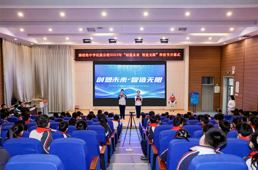 为促进学生科技素养与创新实践能力的全面提升,近期,北京市陈经纶中学民族分校以“创想未来,智造无限”为主题举办2025年校园科技节,1-8年级全体师生参加活动。活动涵盖开幕式、互动体验、手工制作和AIGC成果展四大核心板块。