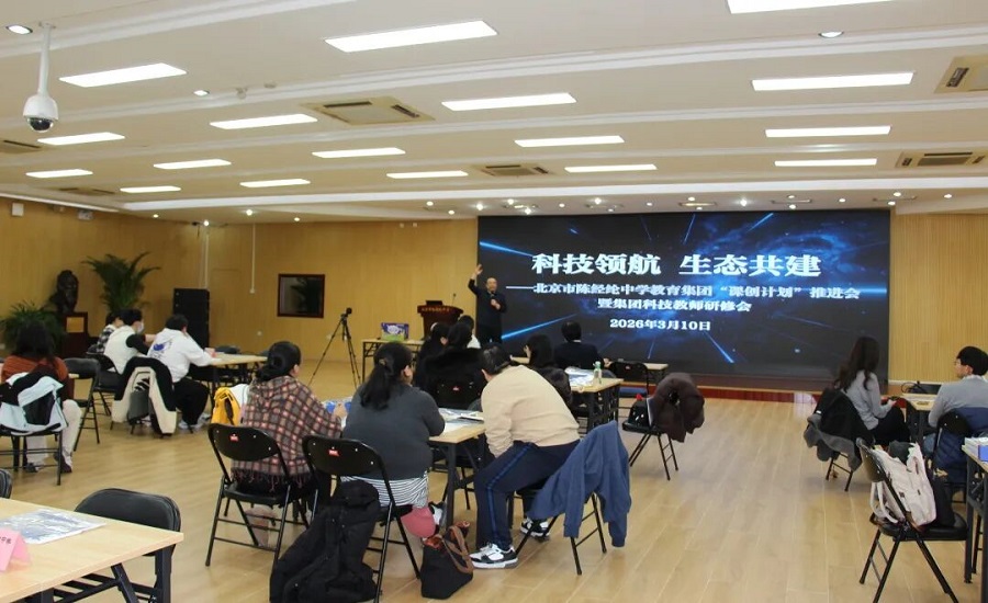 为深入推进集团科创教育生态建设,北京市陈经纶中学教育集团于3月10日召开以“科技领航,生态共建”为主题的“课创计划”项目推进会暨集团科技骨干教师跨校区跨学段跨领域研修会。本次活动以“经纬・星辰启航”“经纬・科创续航”两类特色课程的典型案例为抓手,统一课程实施标准,围绕“理论筑基、项目驱动、以赛促创”三大核心方向,通过“理论精讲+实操体验+赛事解读”的模式,凝聚集团各校师资力量,形成跨校区教研联动机制,系统提升教师综合施教能力,推动课程教育资源的共建共享。