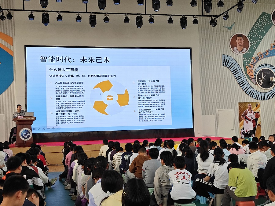 马教授还梳理了人工智能发展的历史脉络,并针对同学们耳熟能详的大语言模型、ChatGPT等技术做了通俗解读,深入浅出的讲解打破了同学们对人工智能的“神秘感”。