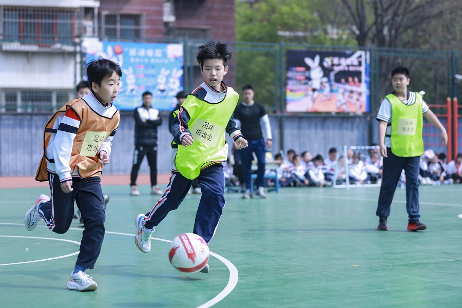 在备受瞩目的班超联赛环节,五年级学生围绕足球、篮球、排球、拔河及接力赛等项目展开激烈角逐。赛场上,各班同学团结协作、奋勇争先,以昂扬的竞技姿态和合作意识诠释了体育精神的内涵,让体育不仅成为比拼技艺、纾解压力的舞台,更是凝聚班级力量、促进同学友谊、促进共同进步的重要纽带。